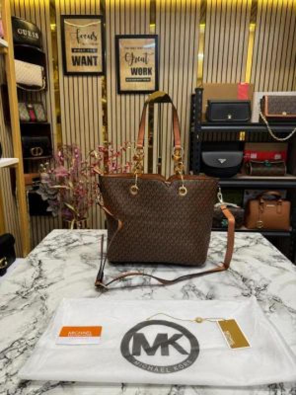Michael_Kors Raven Large Logo Tote Bag With Dust Bag (Coffee Brown)
